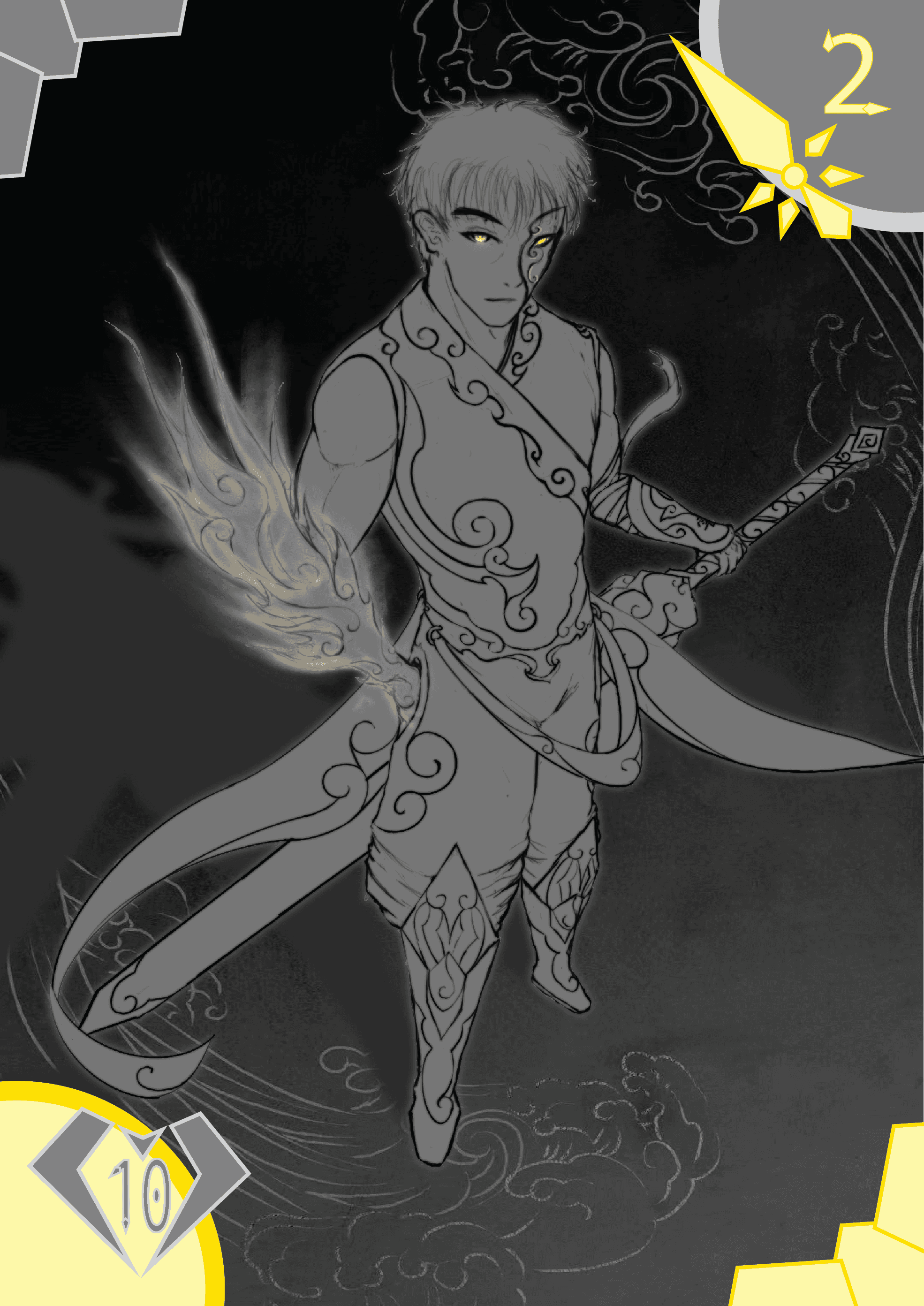 Sun-Moon-Star-Dust: One card of each suit. Damage +2, shield +2, gain 2 points of Elemental Power, and draw one card.